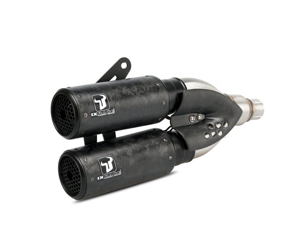 Exkluzivní dvojitý výfuk IXRACE DCX2 – Forged Carbon Edition.