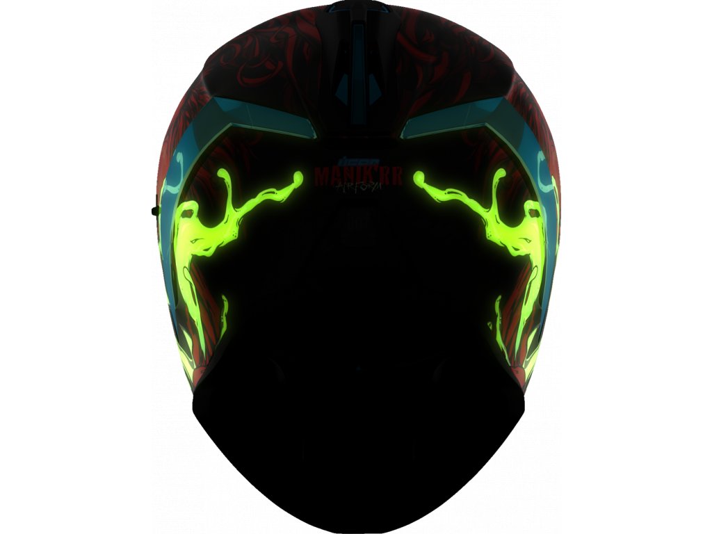 ICON Airform Manik'RR MIPS je perfektní integrální helma pro jezdce na naháčích, sportovních motorkách i streetfighterech, kteří chtějí skloubit nekonvenční styl, svítící ve tmě a špičkovou bezpečnost přilby MIPS.