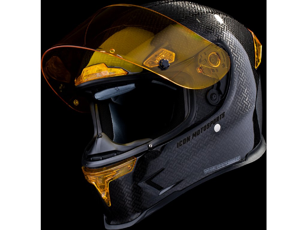 Helma na motorku ICON AIRFRAME PRO CARBON černo zlatá.
