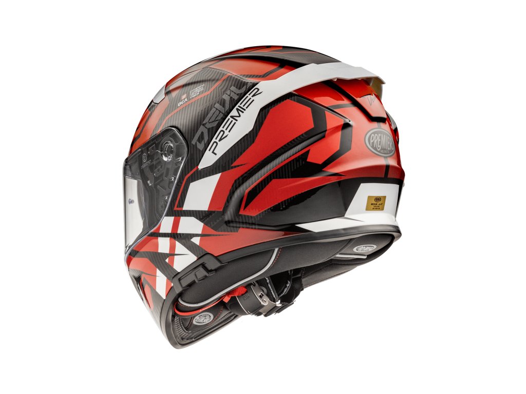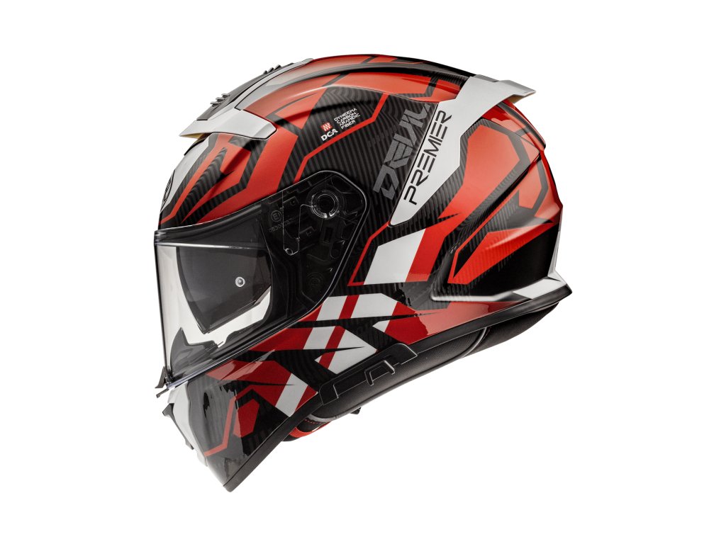 - Integrální helma PREMIER z kolekce DEVIL má konstrukci vnějšího pláště vyrobenou pomocí dvou různých velikostí forem z uhlíkových aramidových vláken kombinovaných s epoxidovou pryskyřicí