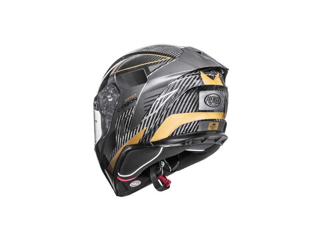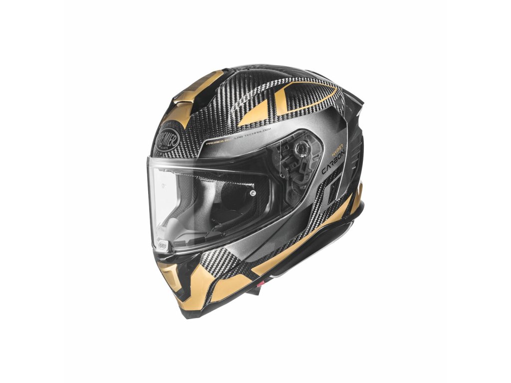- Integrální helma PREMIER z kolekce HYPER má konstrukci skořepiny z trikompozitního vlákna, směsi aramidového vlákna a epoxidové pryskyřice, díky čemuž je přilba elastická, ale odolná v případě nárazu