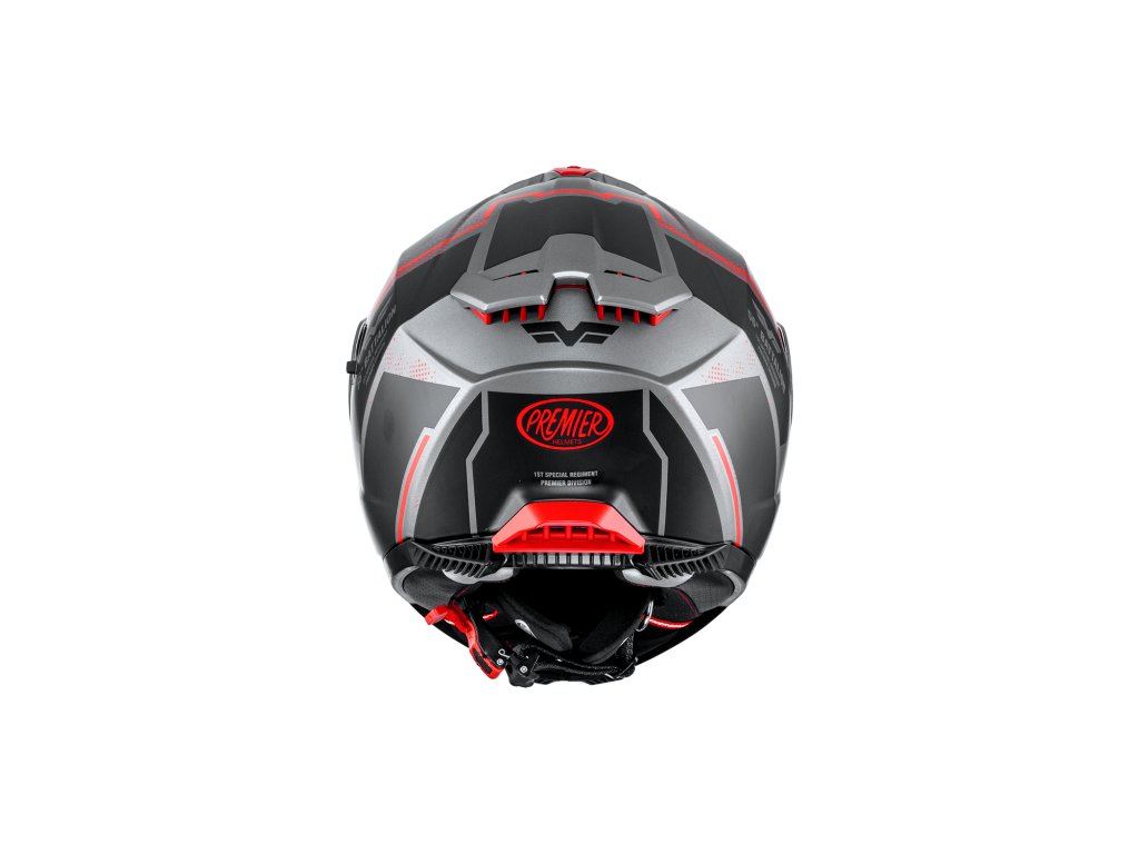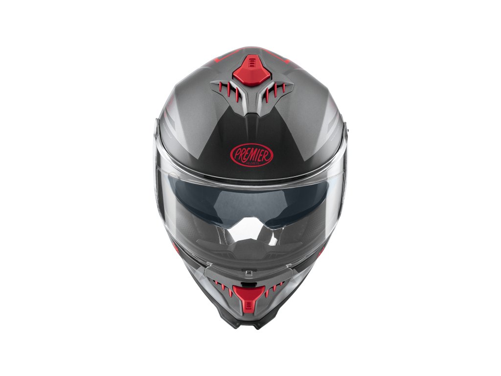 - Integrální helma PREMIER z kolekce TYPHOON používá dvě velikosti forem skořepiny pro zvýšení výkonu v závislosti na zvolené velikosti