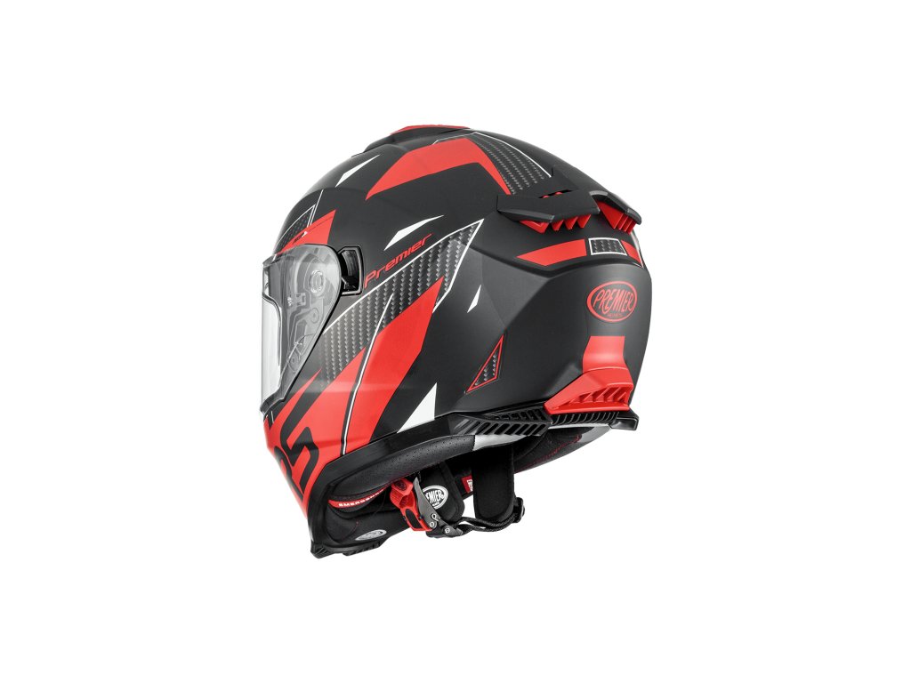 - Integrální helma PREMIER z kolekce TYPHOON používá dvě velikosti forem skořepiny pro zvýšení výkonu v závislosti na zvolené velikosti