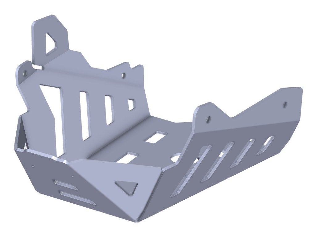 - Komplexní ochrana: Kryt obepíná spodek a obě strany motoru, čímž zajišťuje perfektní ochranu před kameny, nečistotami a tvrdými nárazy.