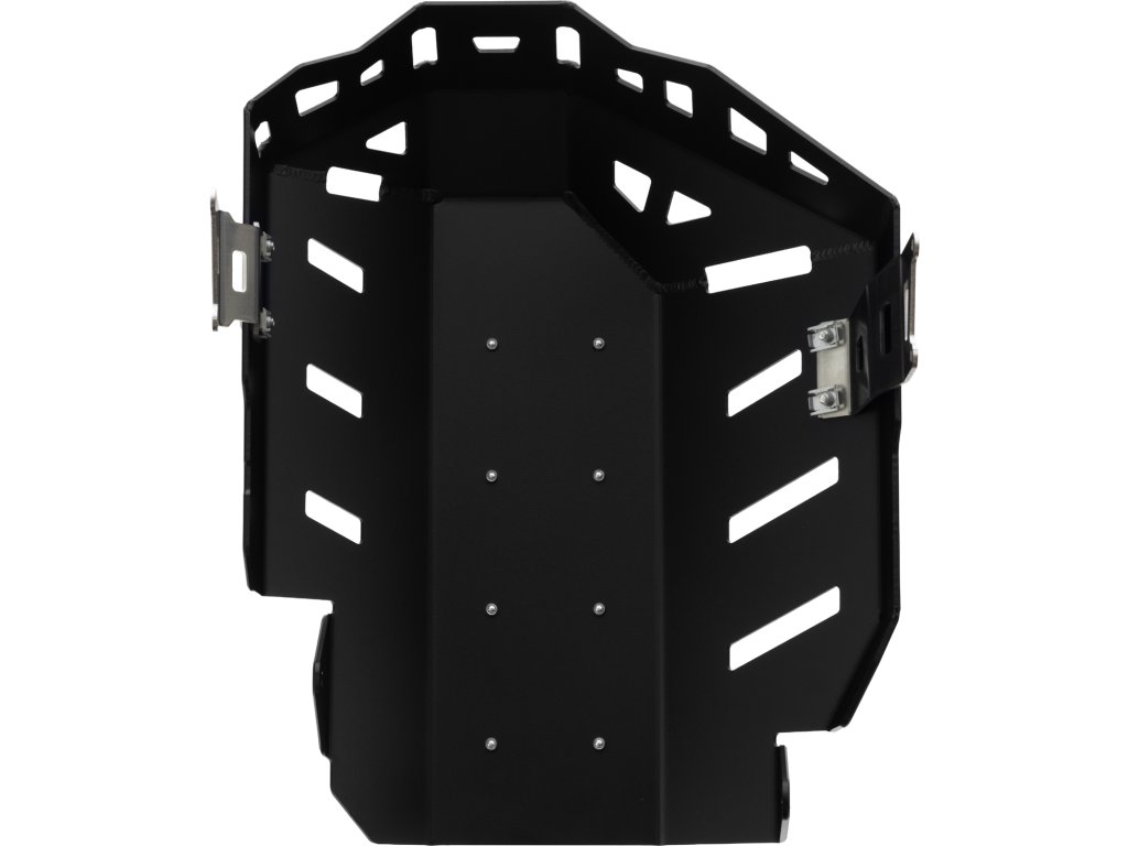 - Komplexní ochrana: Kryt obepíná spodek a obě strany motoru, čímž zajišťuje perfektní ochranu před kameny, nečistotami a tvrdými nárazy.