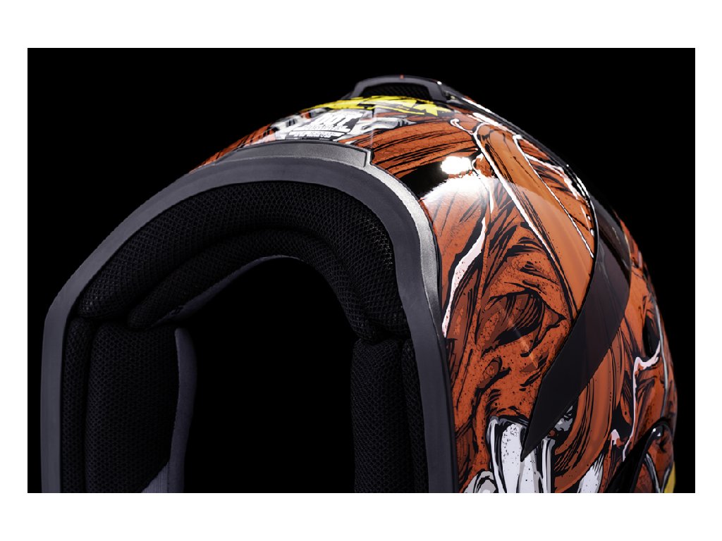 Integrální helma na motorku ICON AIRFLITE TIGERS BLOOD přitahuje pohledy divokou grafikou v tygřích barvách a nabízí maximální bezpečí. Je vybavena revoluční technologií MIPS®...
