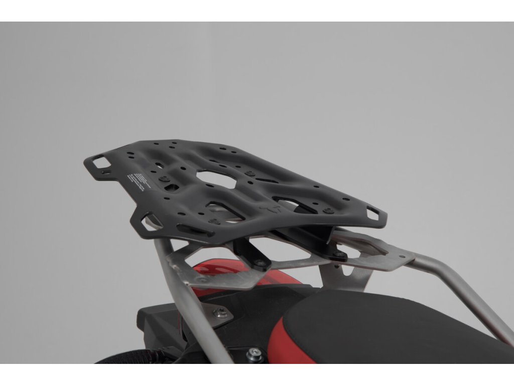 Adventure Rack je robustní nosič pro dlouhé cesty na silnici i mimo ni. Je extra stabilní, odolný vůči vibracím, nárazům a vysoké hmotnosti. vyroben z lehké, robustní 4 mm hliníkové slitiny.