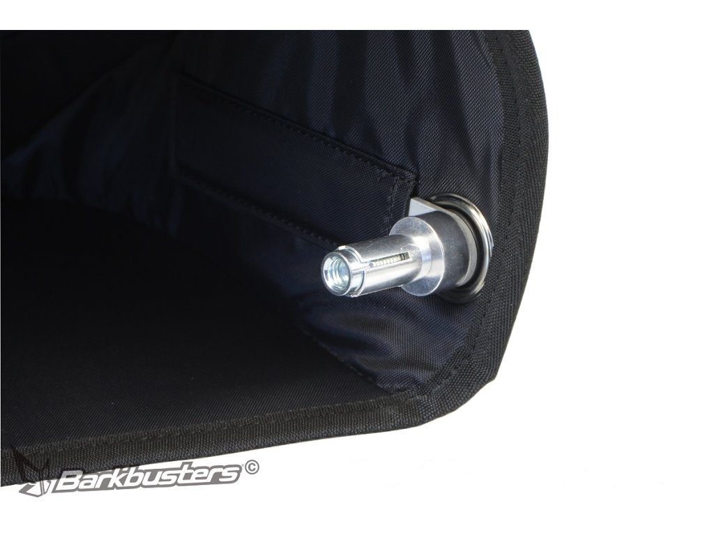 Veškerý montážní hardware je součástí dodávky, aby se přizpůsobil hmotnosti řídítek, dutým řídítkům a přes stávající páteř Barkbusters.