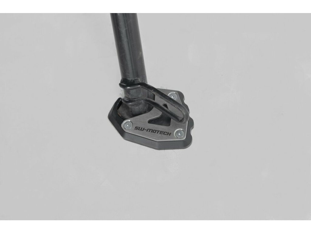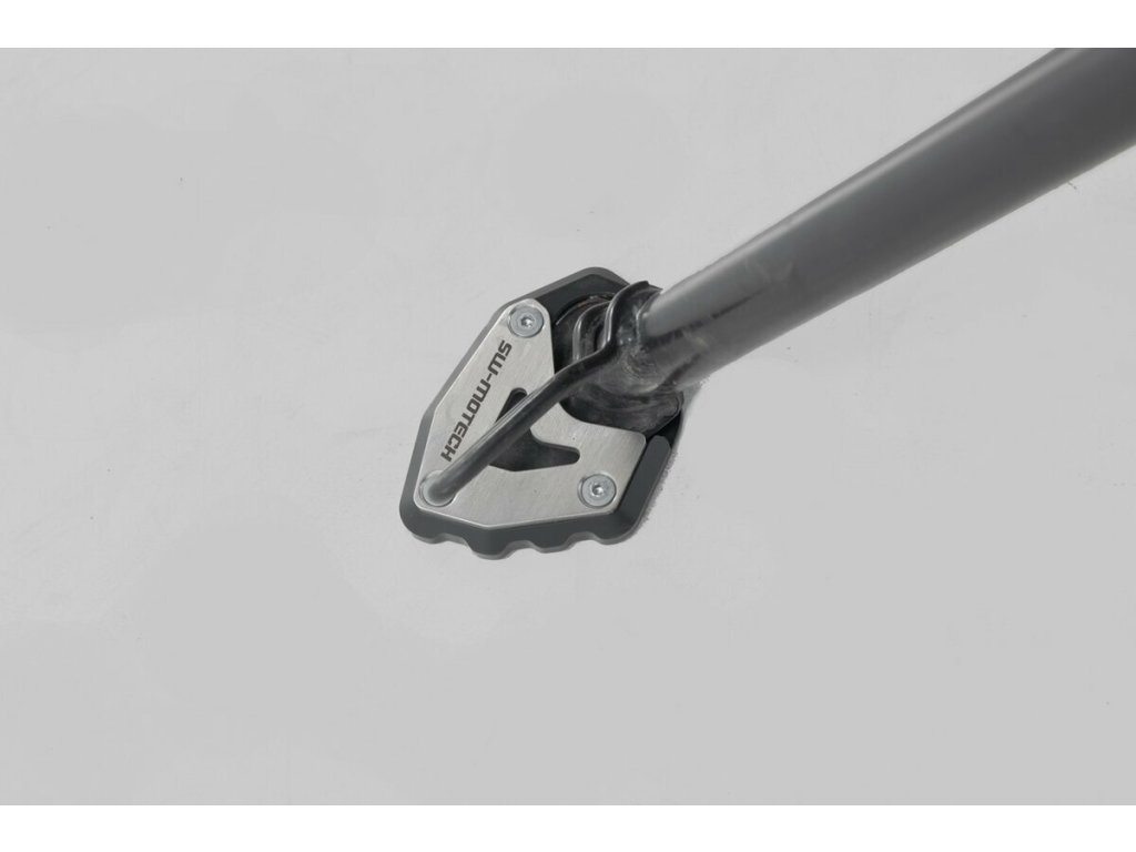 Rozšíření bočního stojánku na moto SW Motech má velkou kontaktní plochu pro lepší stabilitu i na nerovném terénu a měkké půdě. Při vývoji nových produktů je prioritou SW Motech přesné uchycení a snadné použití při každodenním ježdění. Profilovaná horní část rozšíření stojánku usnadňuje rozložení stojanu i u těžkých bot.